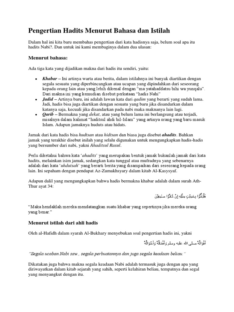 Pengertian Hadits Menurut Bahasa Dan Istilah Pdf